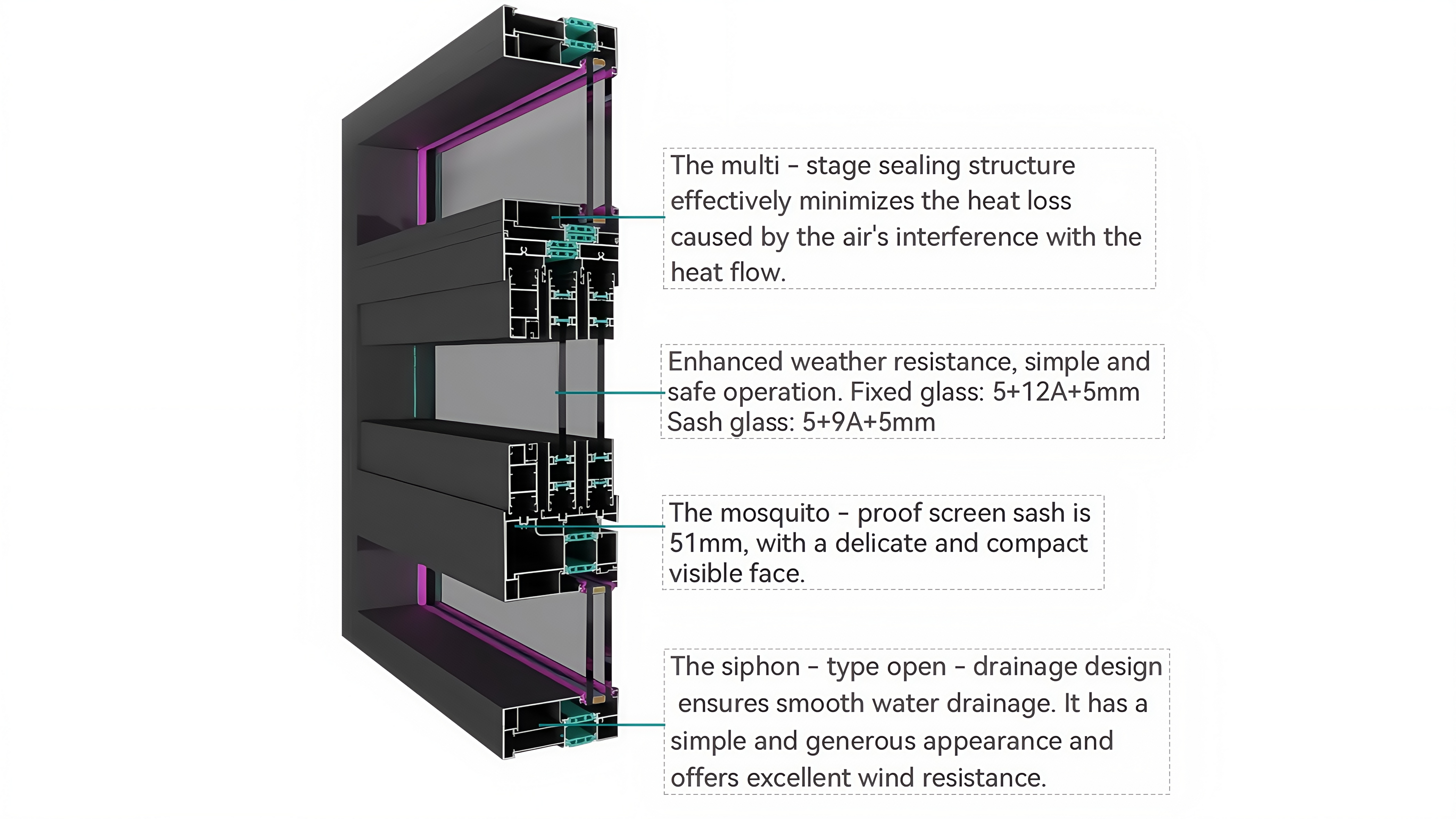 4. The heat - insulating broken bridge uses PA66 nylon thermal insulation strips, providing strong heat - preservation performance.